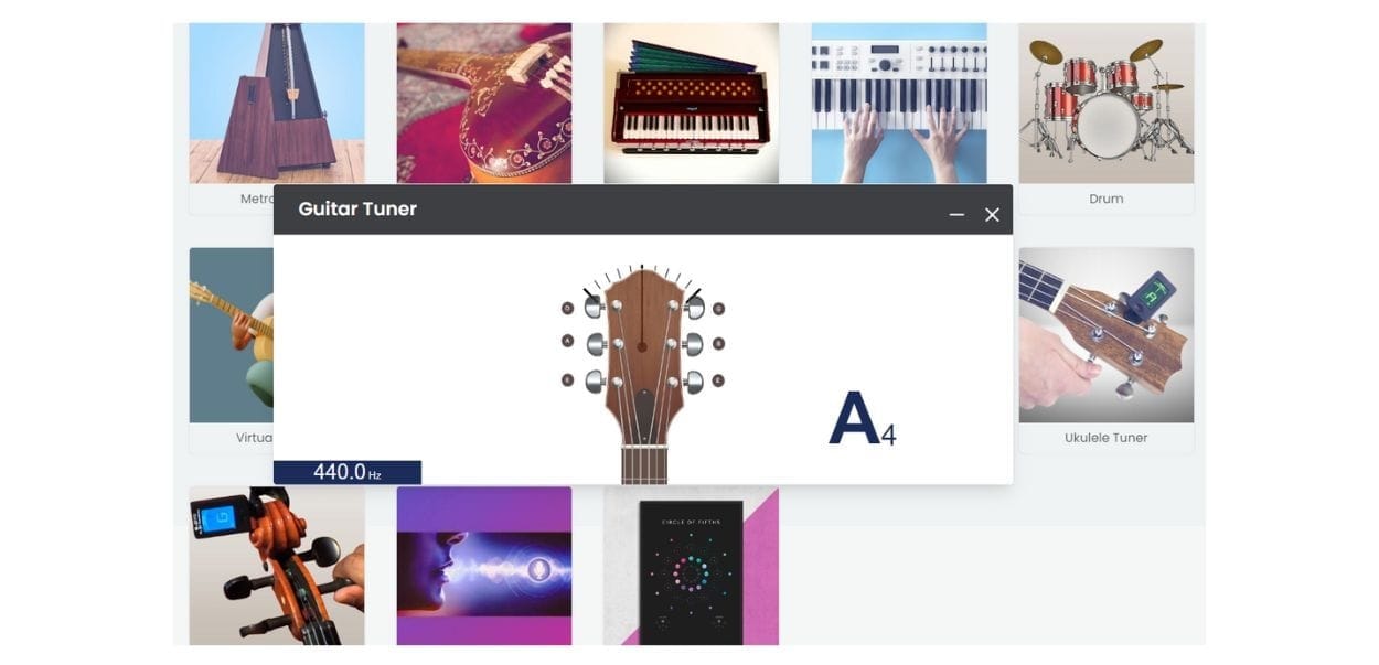 To access the tuner application on the Spardha portal, the student has to go to the left panel of the home screen to find the option ‘Music Tools’ and then click on ‘Guitar Tuner’. The process of tuning the guitar is the same, you have to tune the respective strings with the notes.