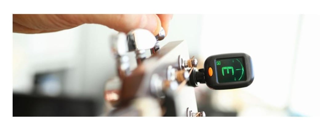 1. Using a physical headstock clip-on tuner that works based on the vibration of the instrument.